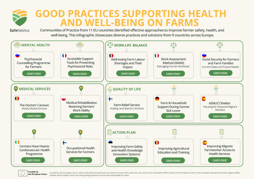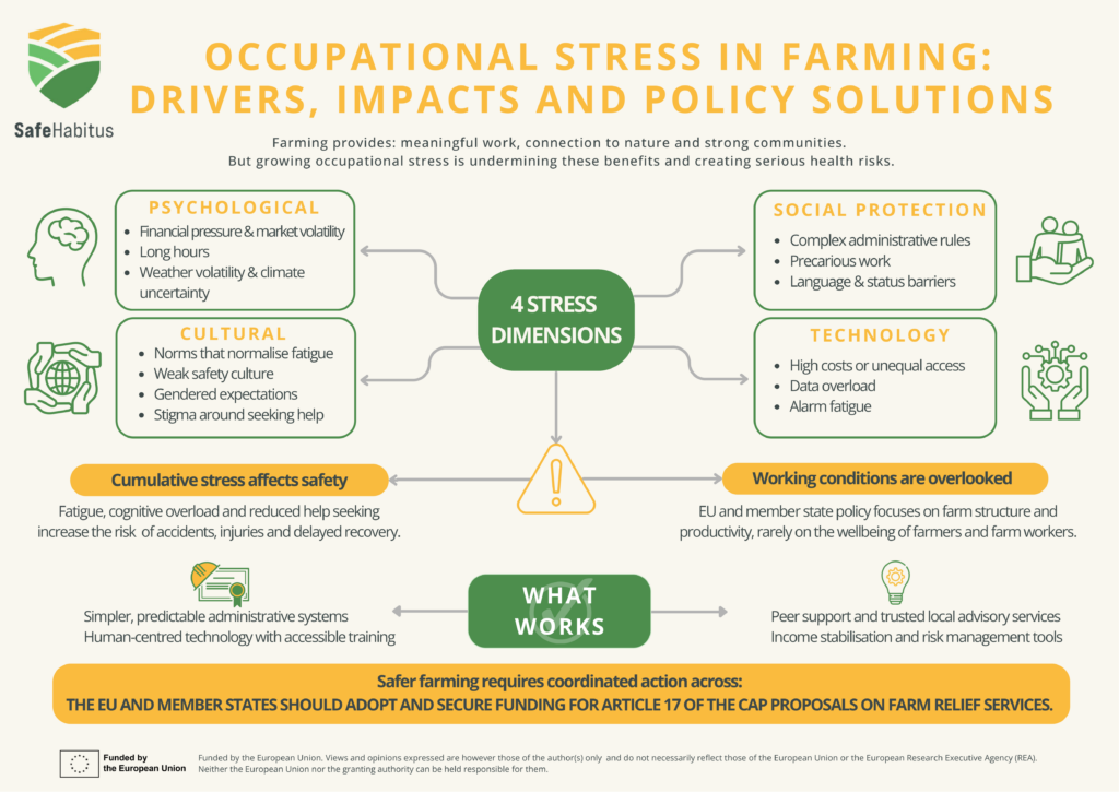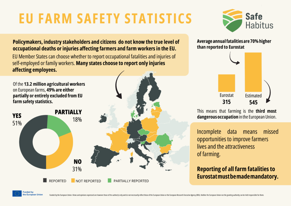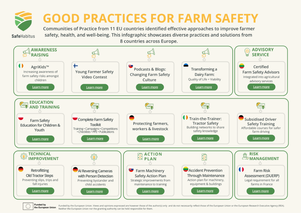 Partneri projektu SafeHabitus budú vykonávať výskum, spoločne navrhovať a distribuovať ľahko dostupné a prakticky orientované znalosti a nástroje, ktoré zlepšujú povedomie o bezpečnosti poľnohospodárskych pracovníkov a uplatňovanie procesov sociálnych inovácií na zvýšenie blahobytu a kvality života v poľnohospodárskom sektore. Zameranie projektu na zdravie a bezpečnosť na farmách zahŕňa všetkých pracovníkov bez ohľadu na ich postavenie (mladí alebo starí, na plný úväzok alebo dočasný, celoroční alebo sezónni).